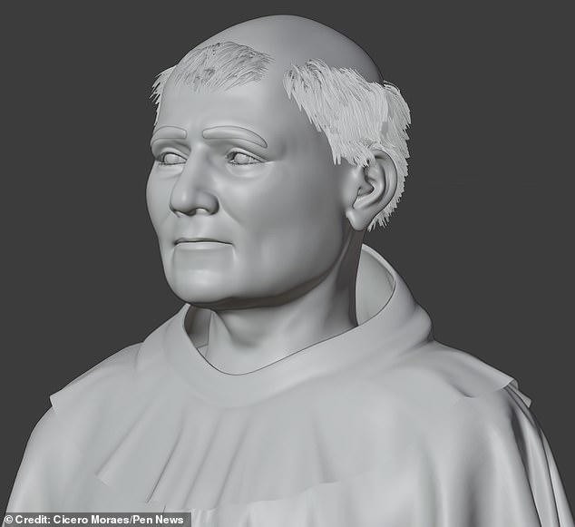 De belangrijkste auteur van het nieuwe onderzoek, de Braziliaanse 3D-ontwerper Cicero Moraes, die gezichten van andere heiligen heeft gereconstrueerd, vertelde aan de Daily Mail: “In eerste instantie hebben we de schedel gereconstrueerd aan de hand van fotografische en structurele gegevens.”