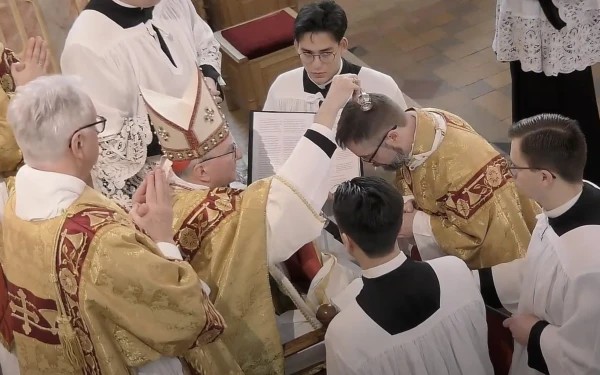 Frederik Hansen (midden) voor zijn bisschopswijding tot bisschop van Oslo op zaterdag 18 januari 2024. Beeld: Rudolf Gehrig/EWTN Nieuws